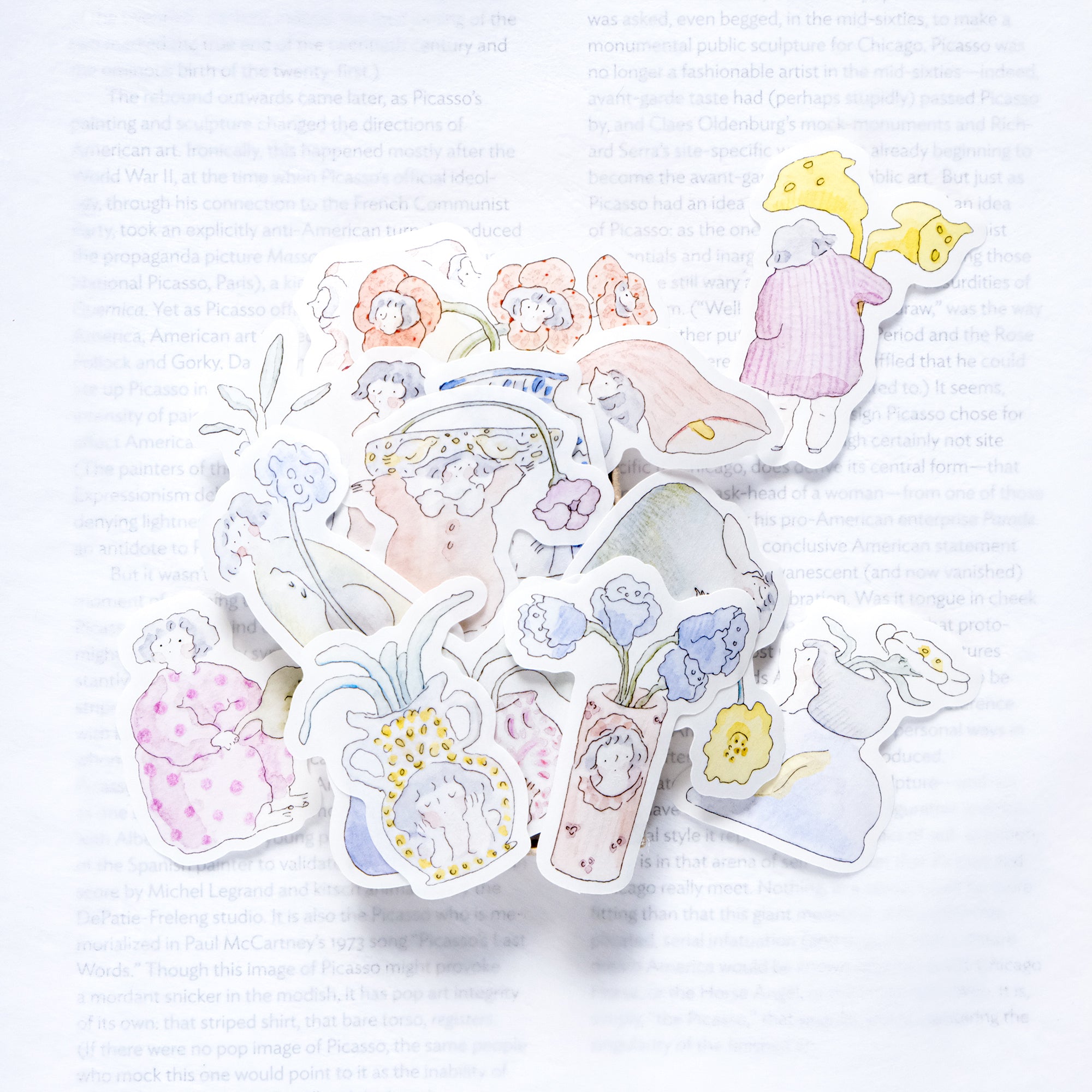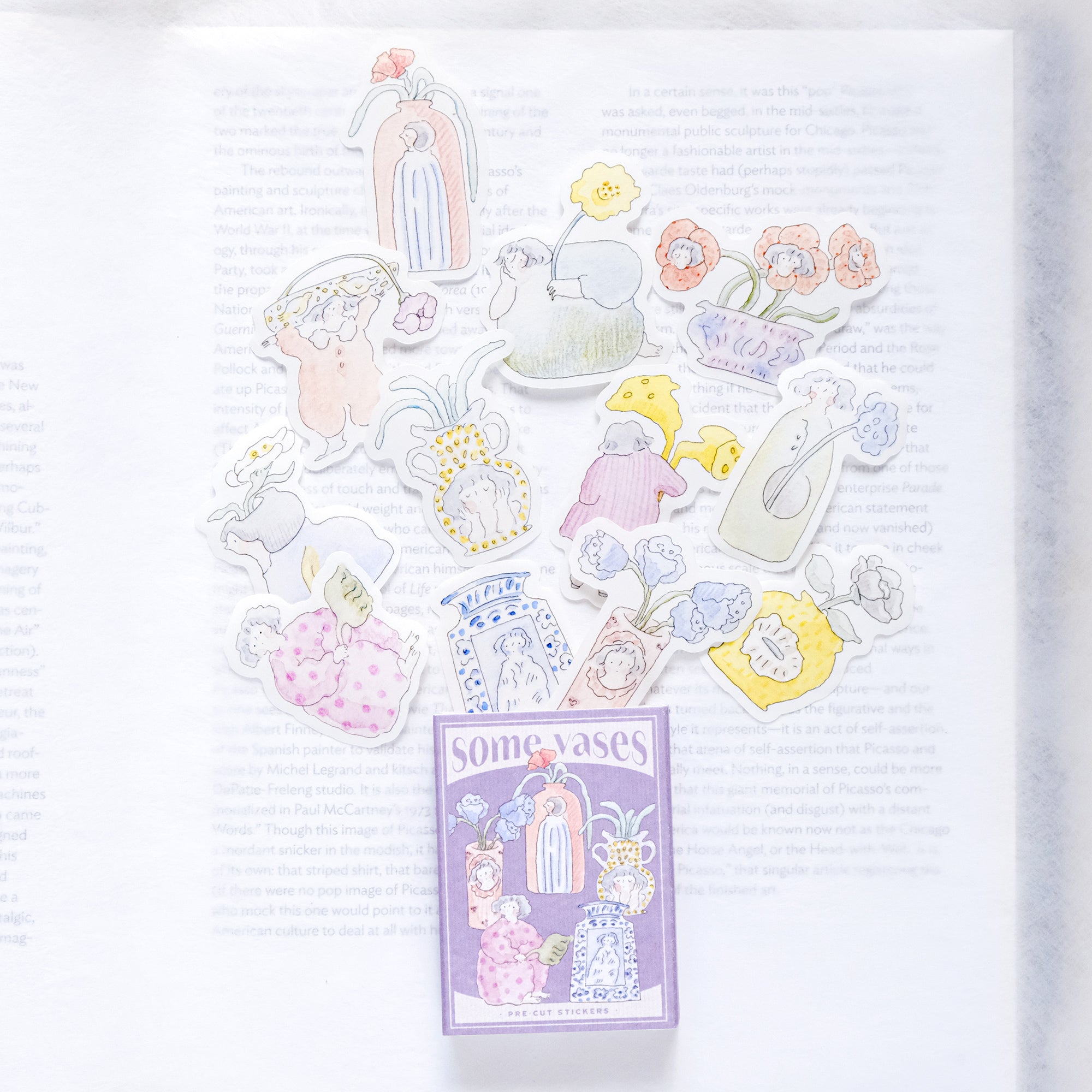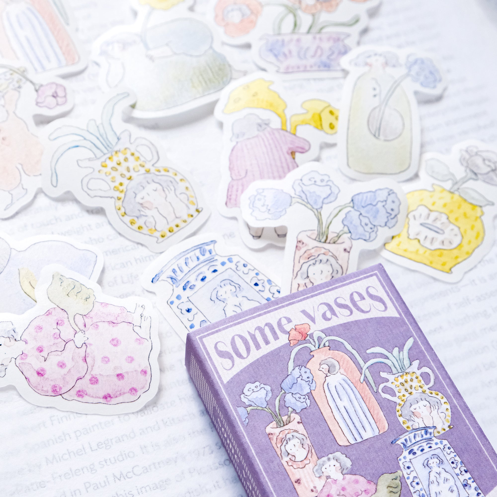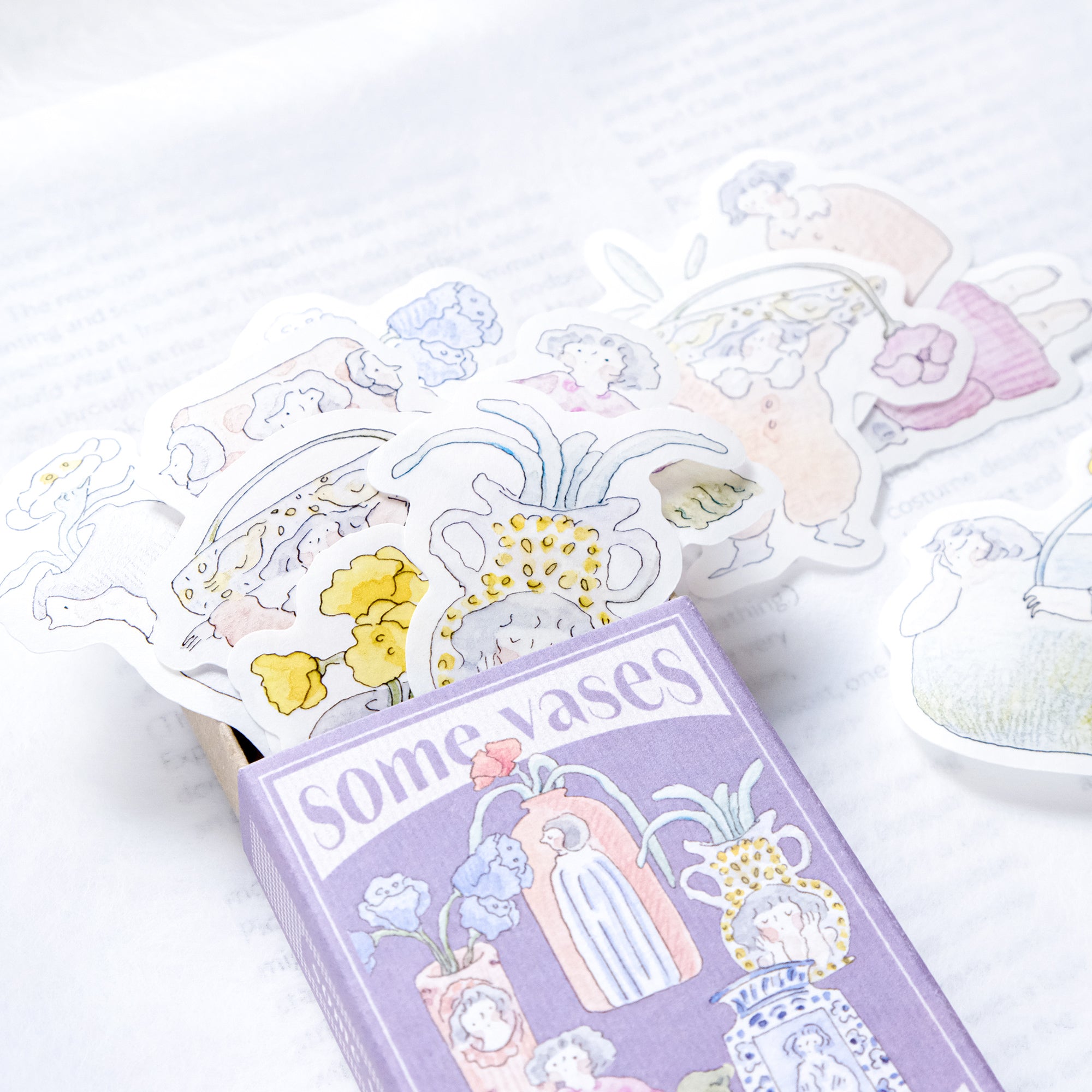 Introducing the "Some Vases" flake stickers matchbox series from dodolulu! Perfect for journal lovers who appreciate beautiful illustrations, these die-cut stickers feature original artworks in watercolor and colored pencil. The designs feature adorable girls that will add a unique touch to your journals, planners, or any other project you have in mind. Get creative and make something special with the "Some Vases" flake stickers matchbox series!