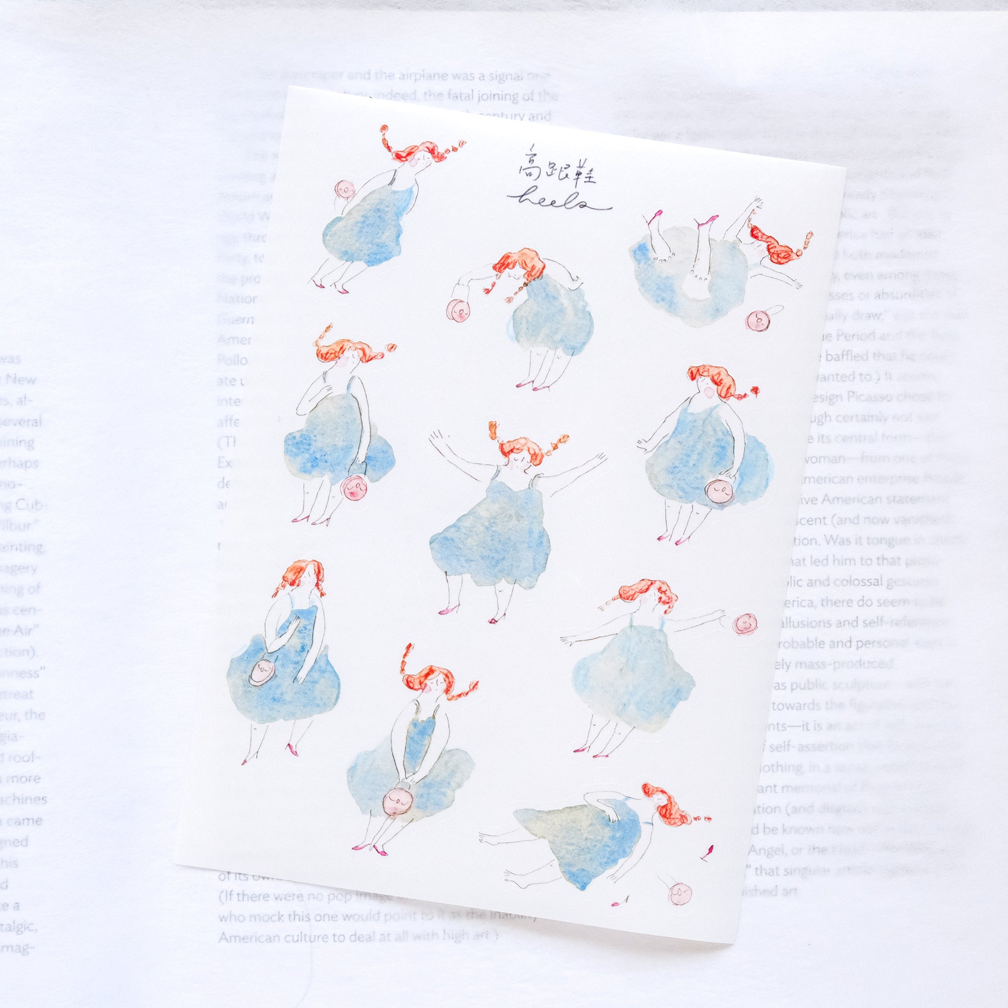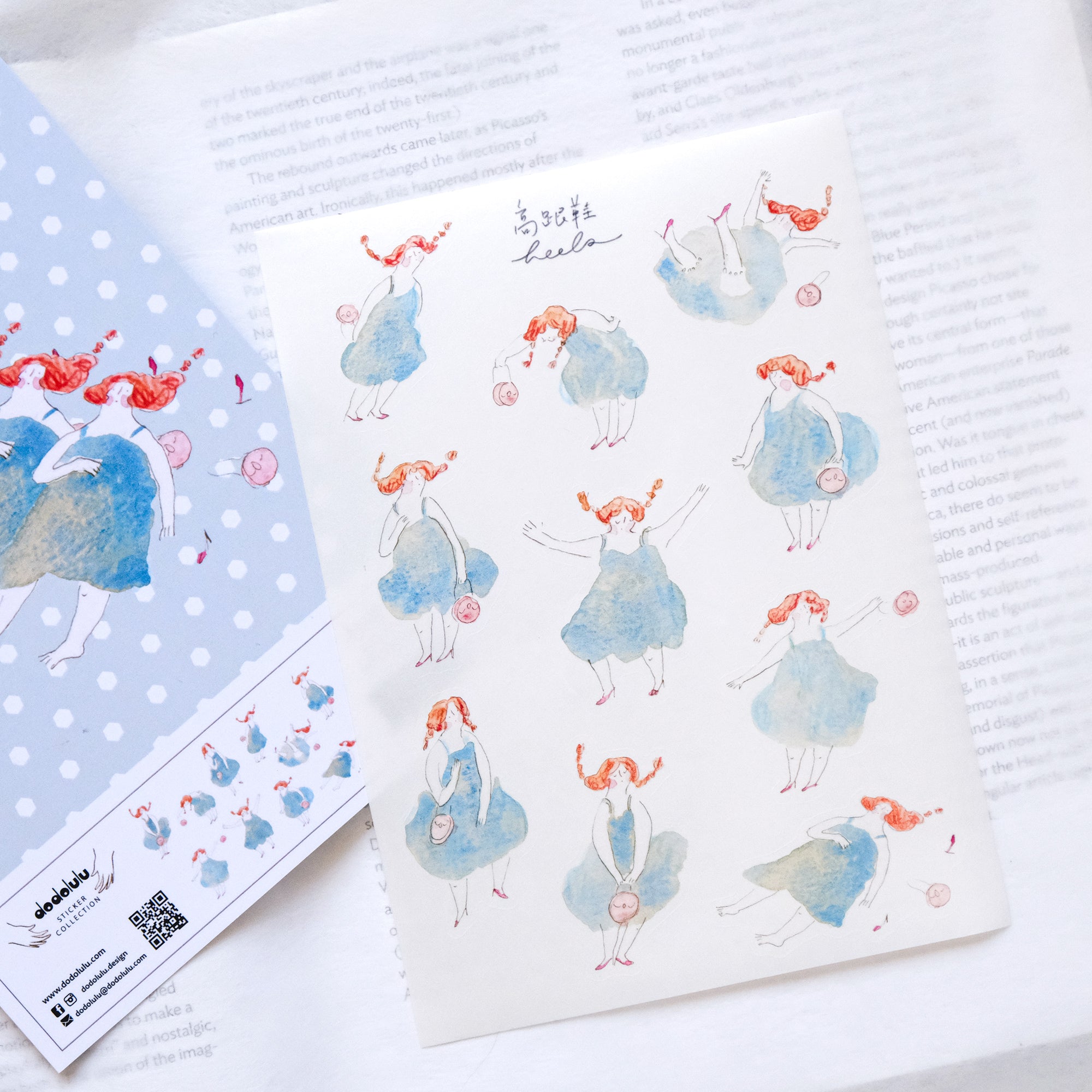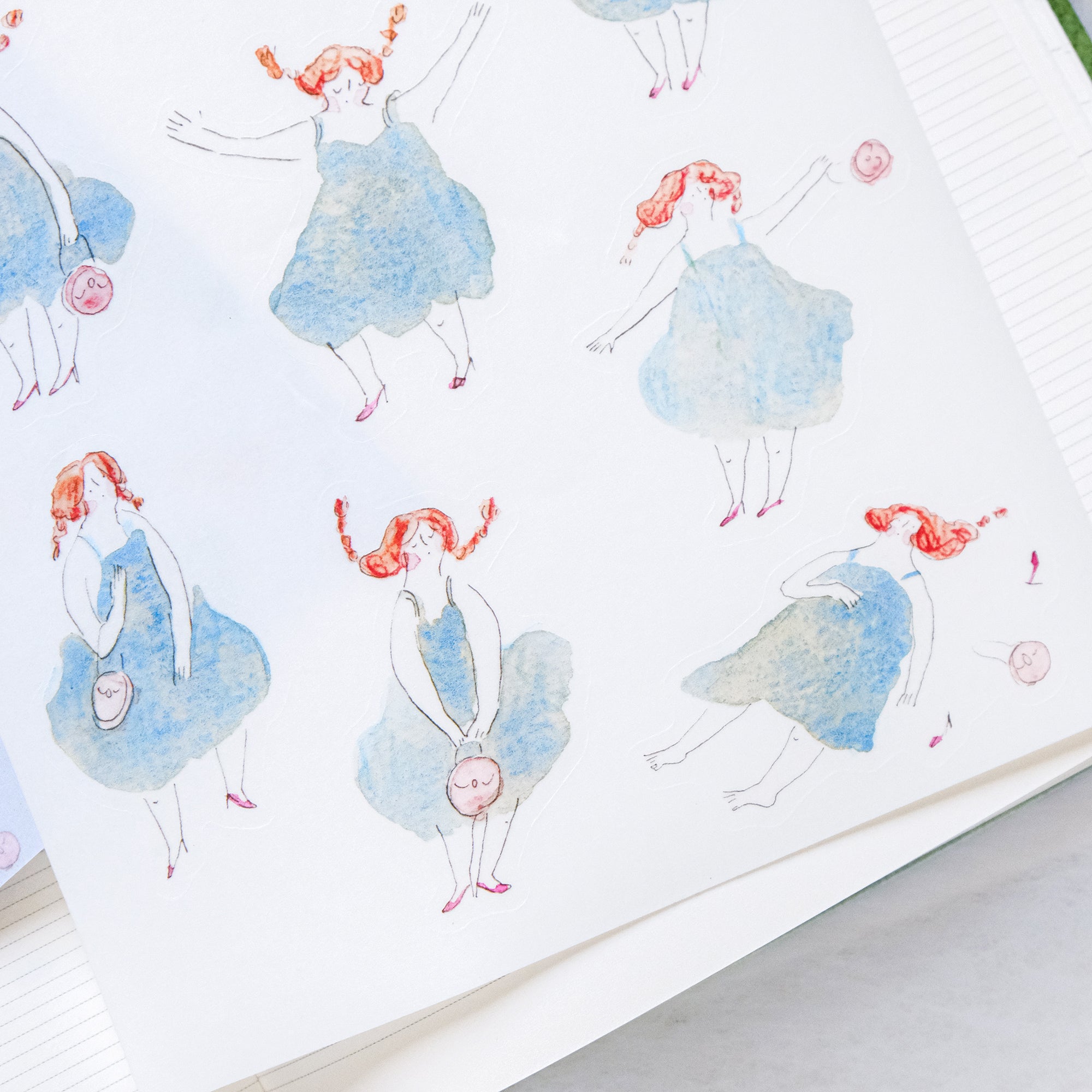 If you're a journal lover who adores beautiful illustrations, then the dodolulu "Heels" sticker sheet is for you! These kiss-cut stickers showcase original artworks in watercolor and colored pencil by dodolulu, with charming girls in every design. Use them to bring some personality to your journals or planners.