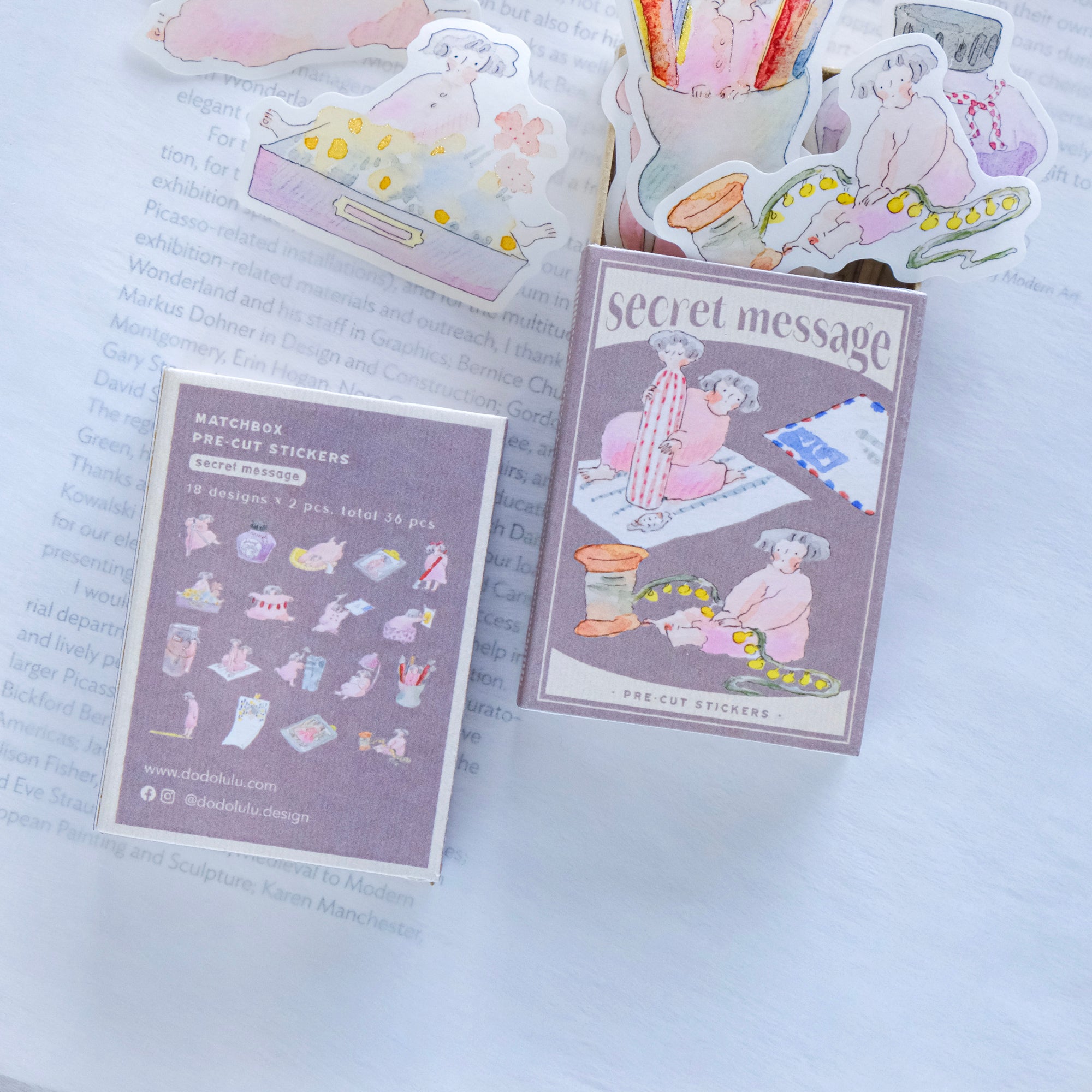 Add a touch of whimsy to your journal or planner with the "Secret Message" Flake Stickers Matchbox Series from dodolulu. Featuring adorable girls illustrated in watercolor and colored pencil, these die-cut stickers are perfect for those seeking unique and expressive embellishments. Uncover hidden messages and add a personal touch to your projects with this delightful collection.
