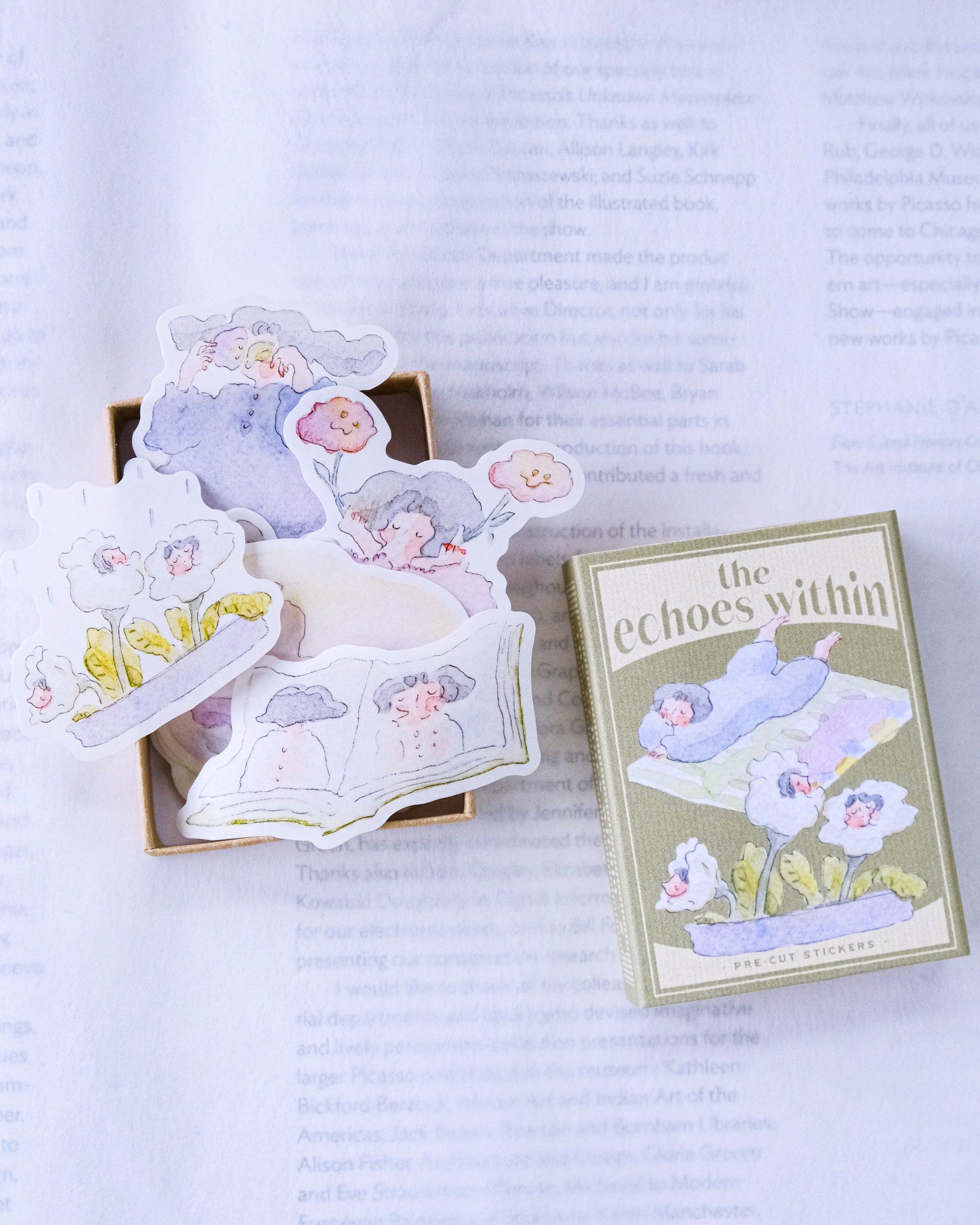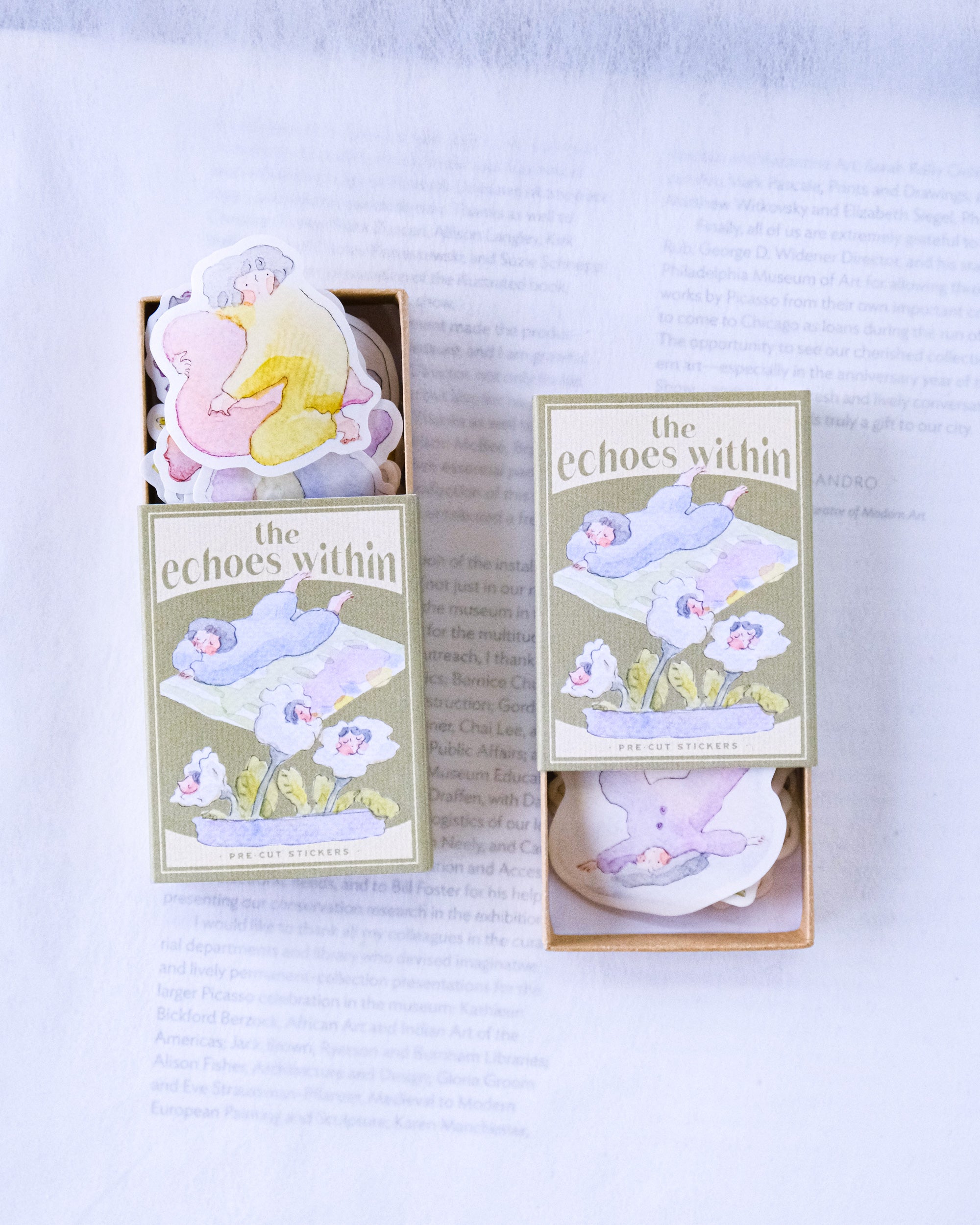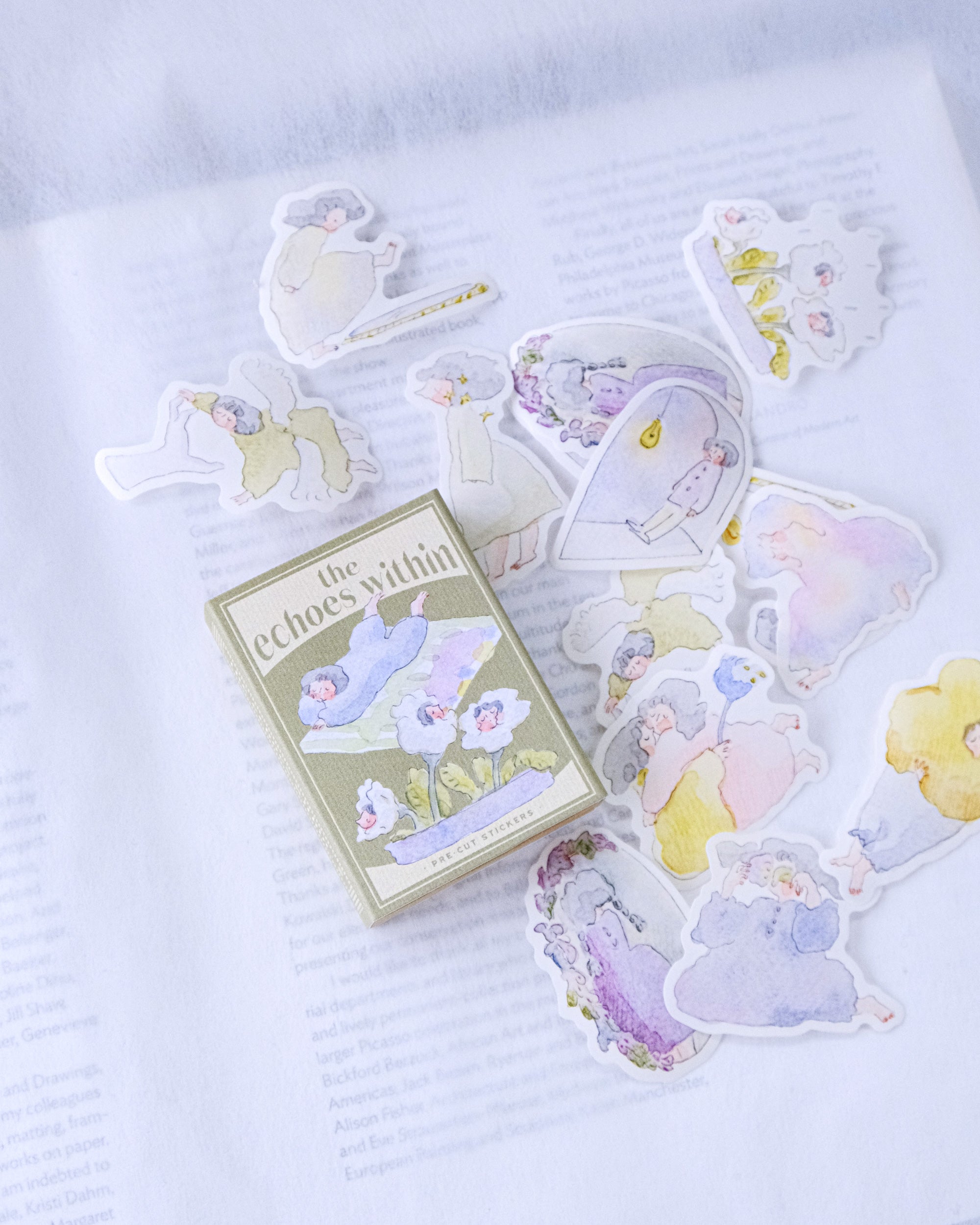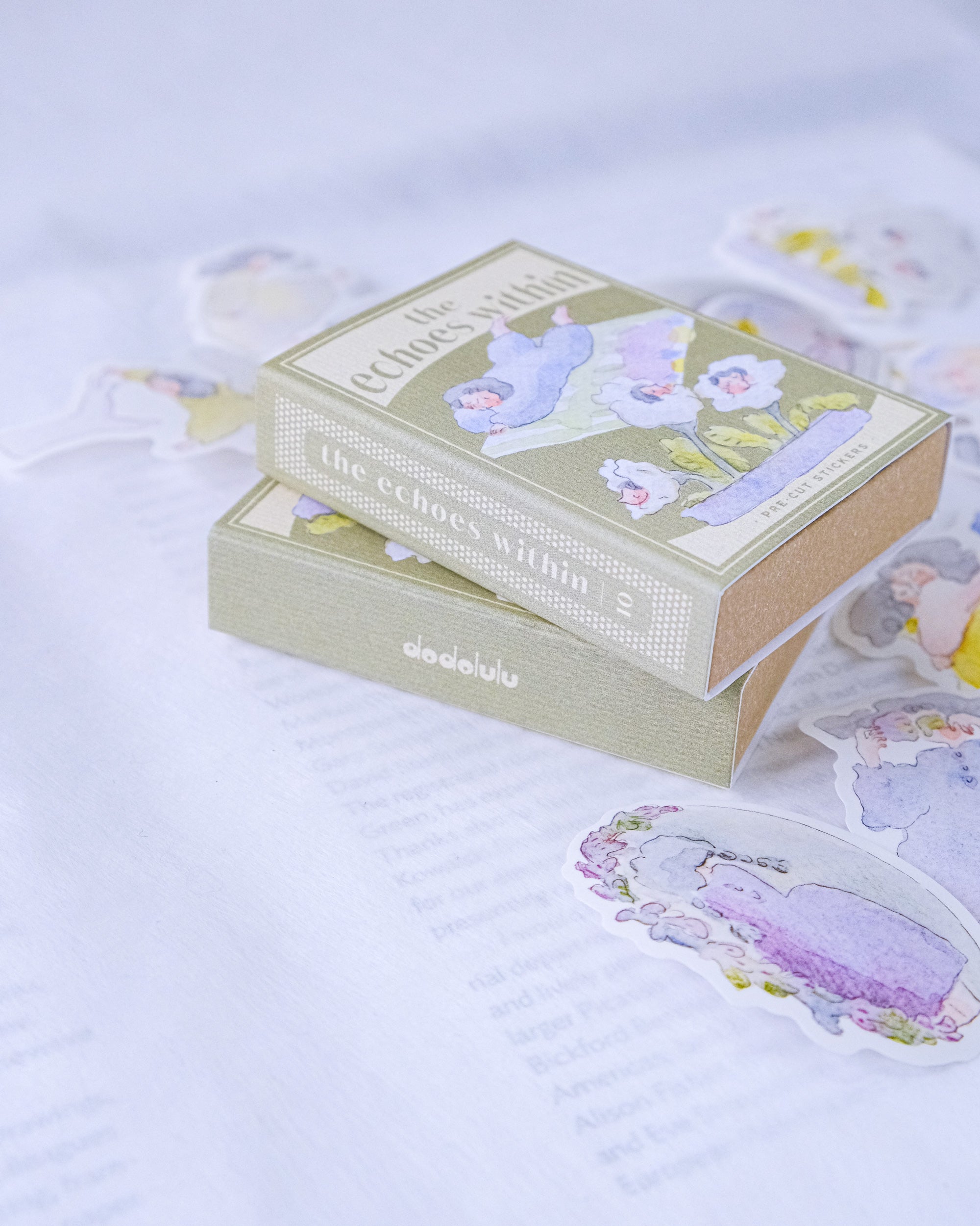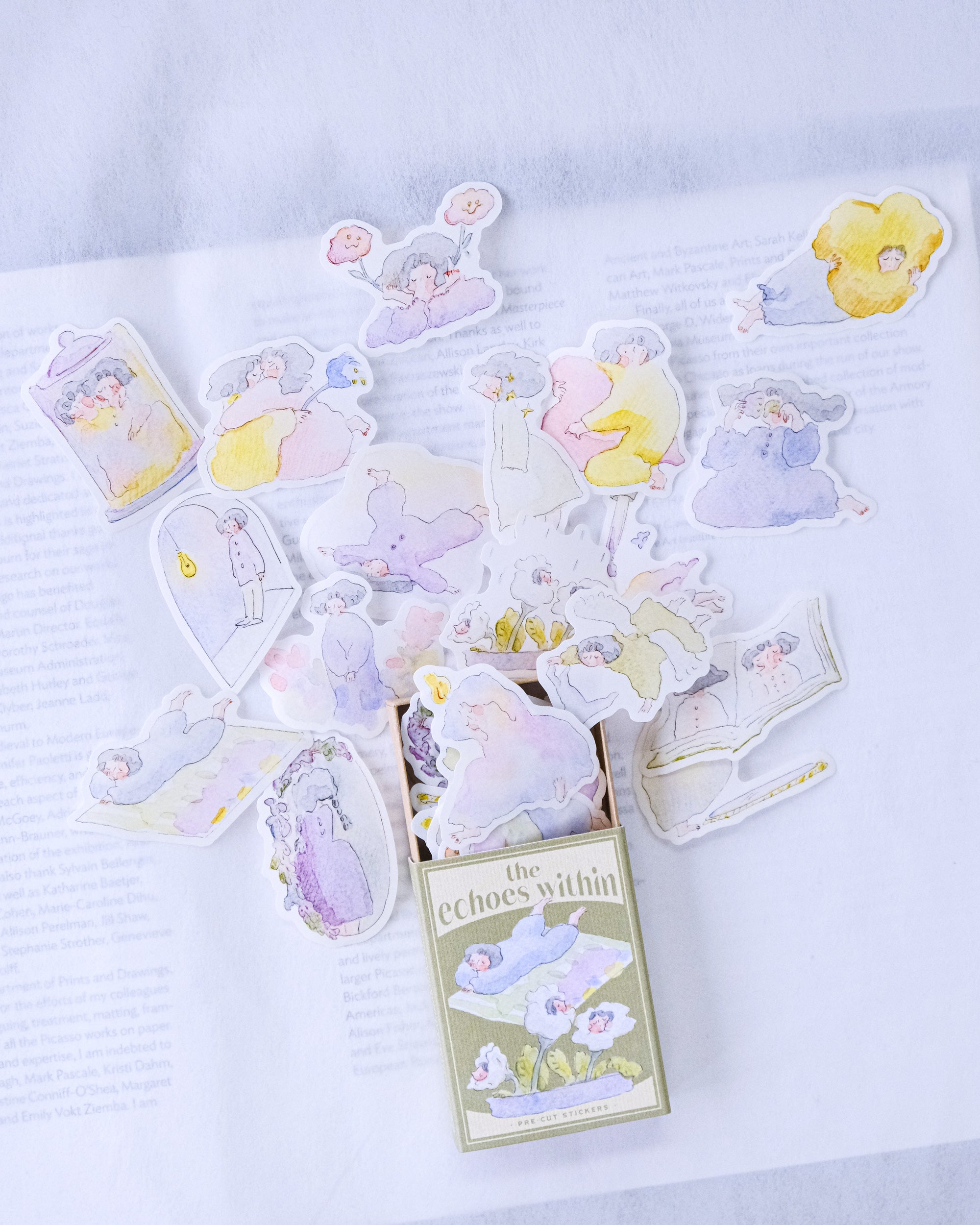 Step back in time with the "The Echoes Within" Flake Stickers Matchbox Series from dodolulu. These charming die-cut stickers, illustrated in delicate watercolor and colored pencil. Perfect for adding a touch of nostalgia and elegance to your journals, planners, or scrapbooks.