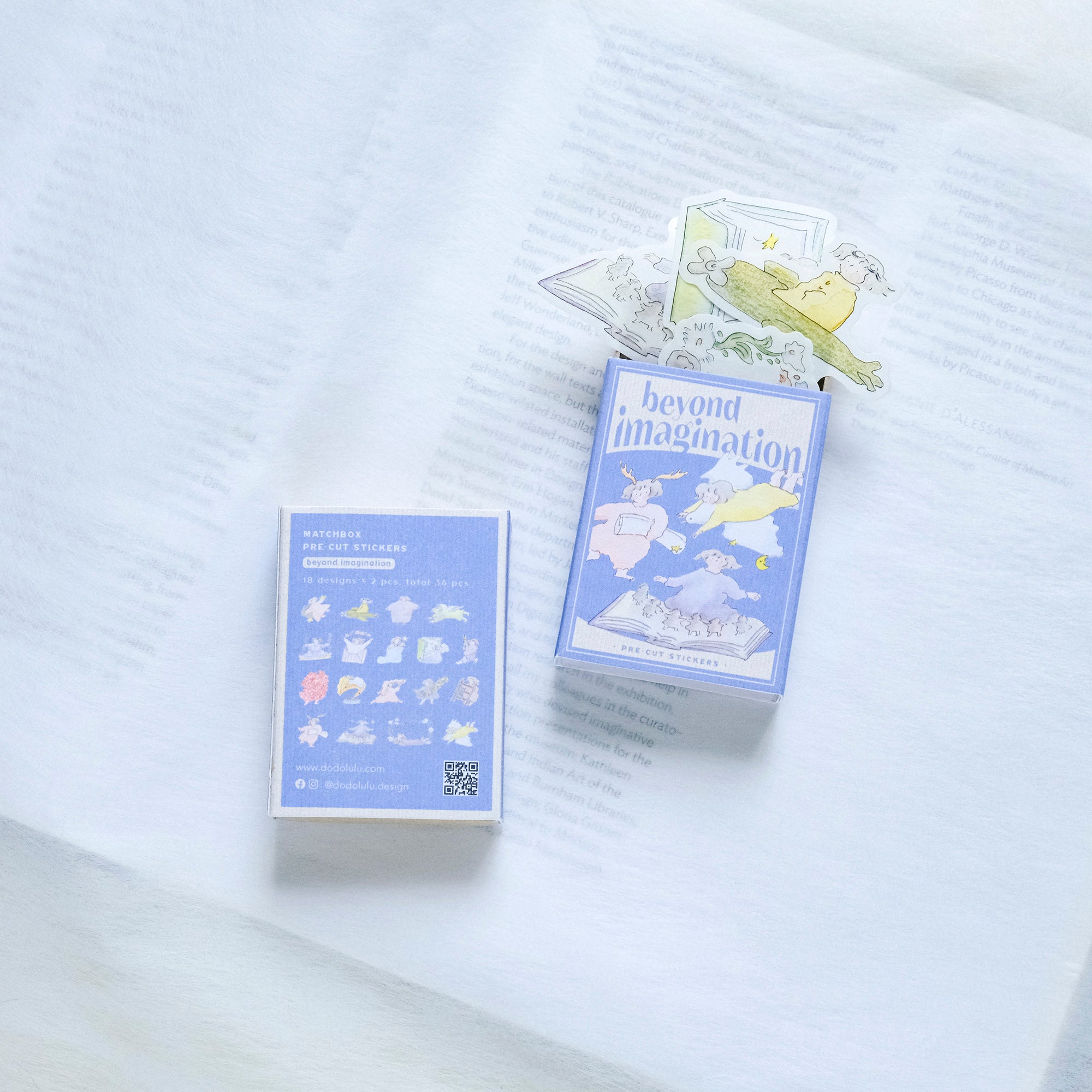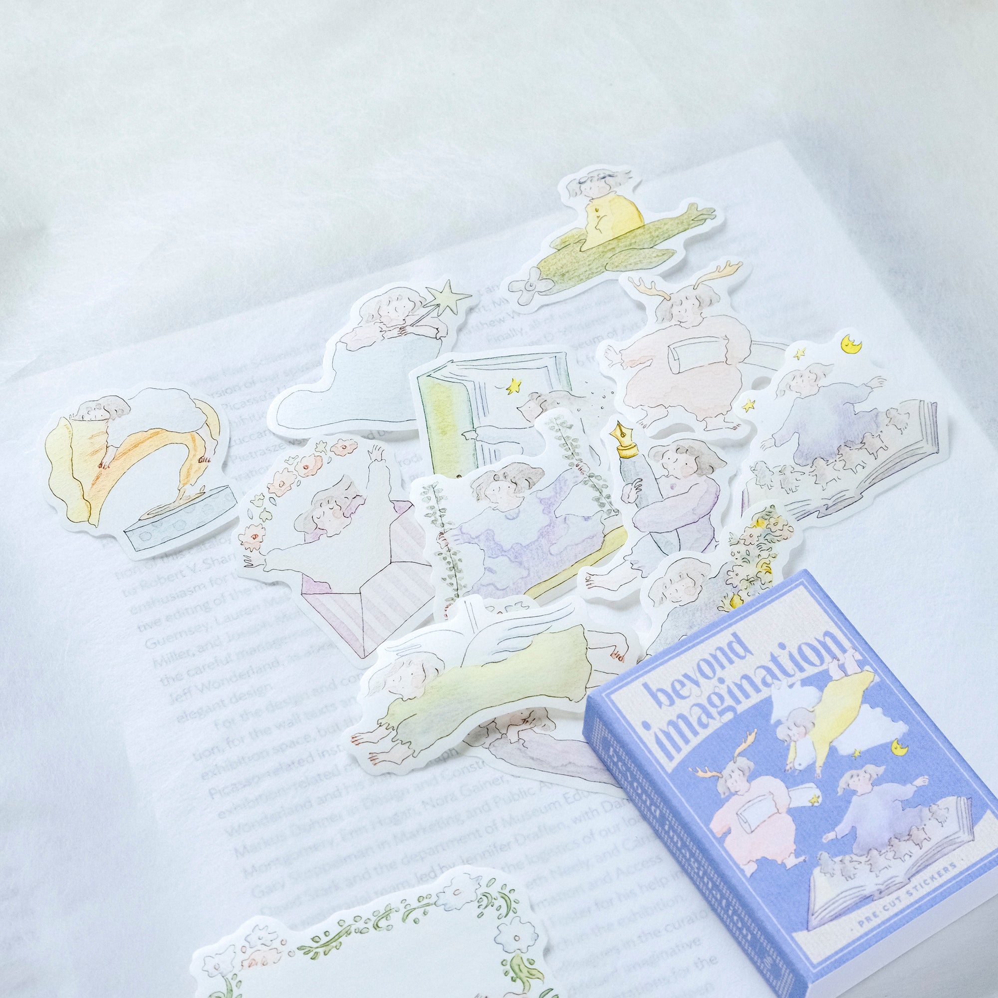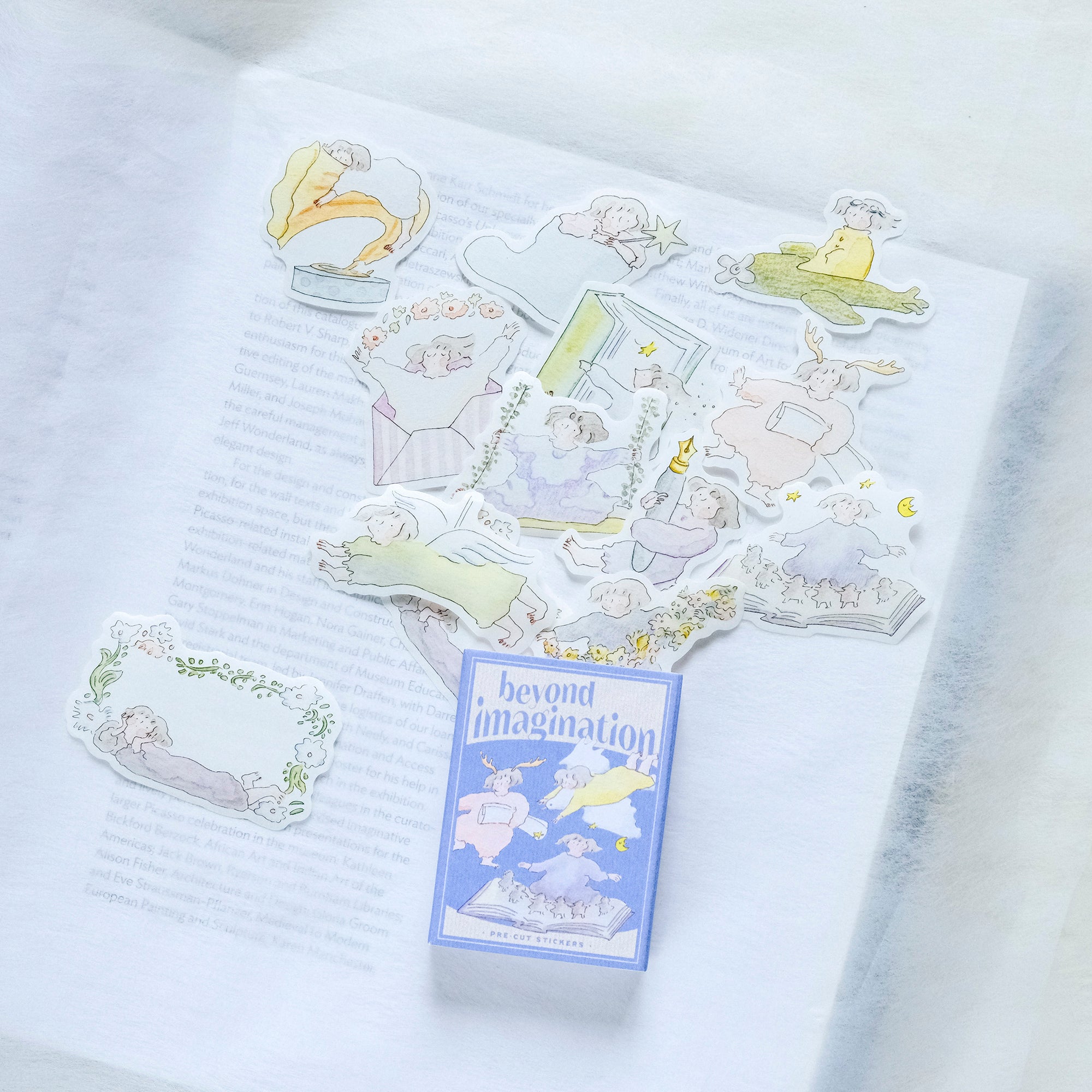 Introducing the "Beyond Imagination" flake stickers matchbox series from dodolulu! Perfect for journal lovers who appreciate beautiful illustrations, these die-cut stickers feature original artworks in watercolor and colored pencil. The designs feature adorable girls that will add a unique touch to your journals, planners, or any other project you have in mind. Get creative and make something special with the "Beyond Imagination" flake stickers matchbox series!