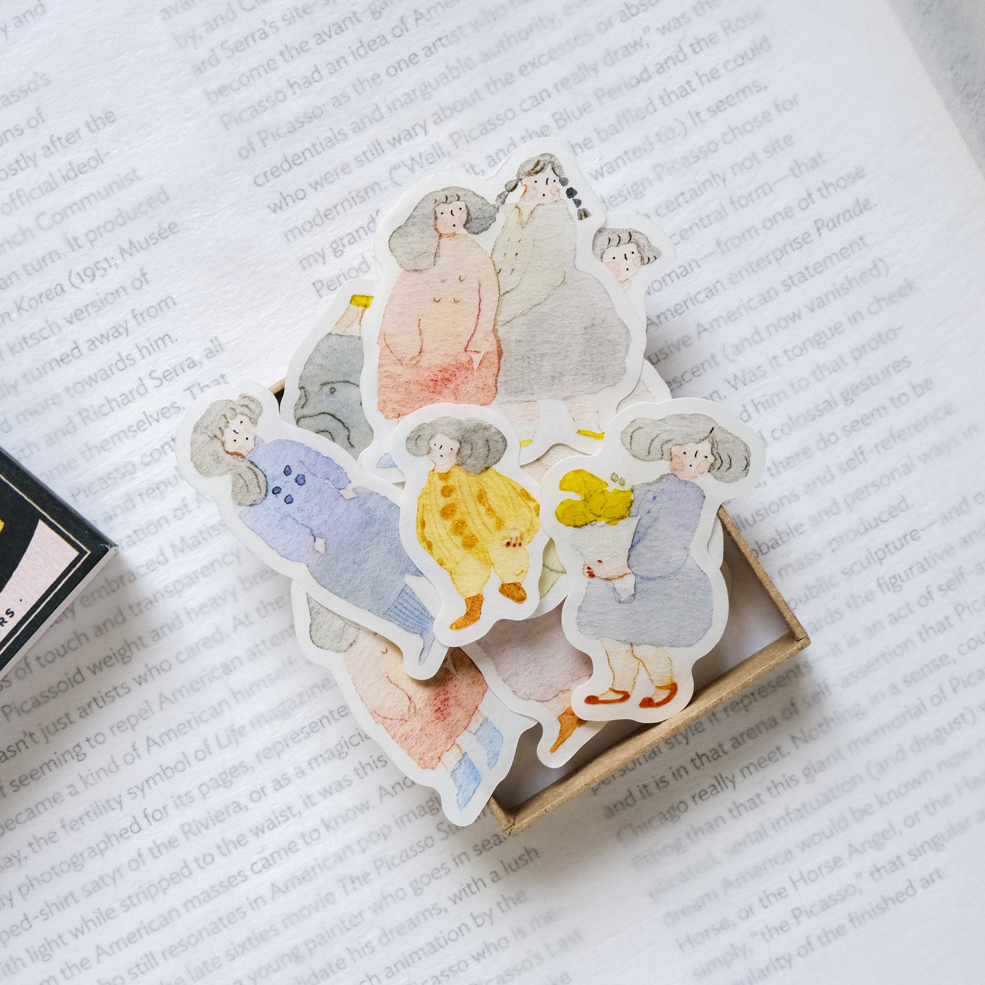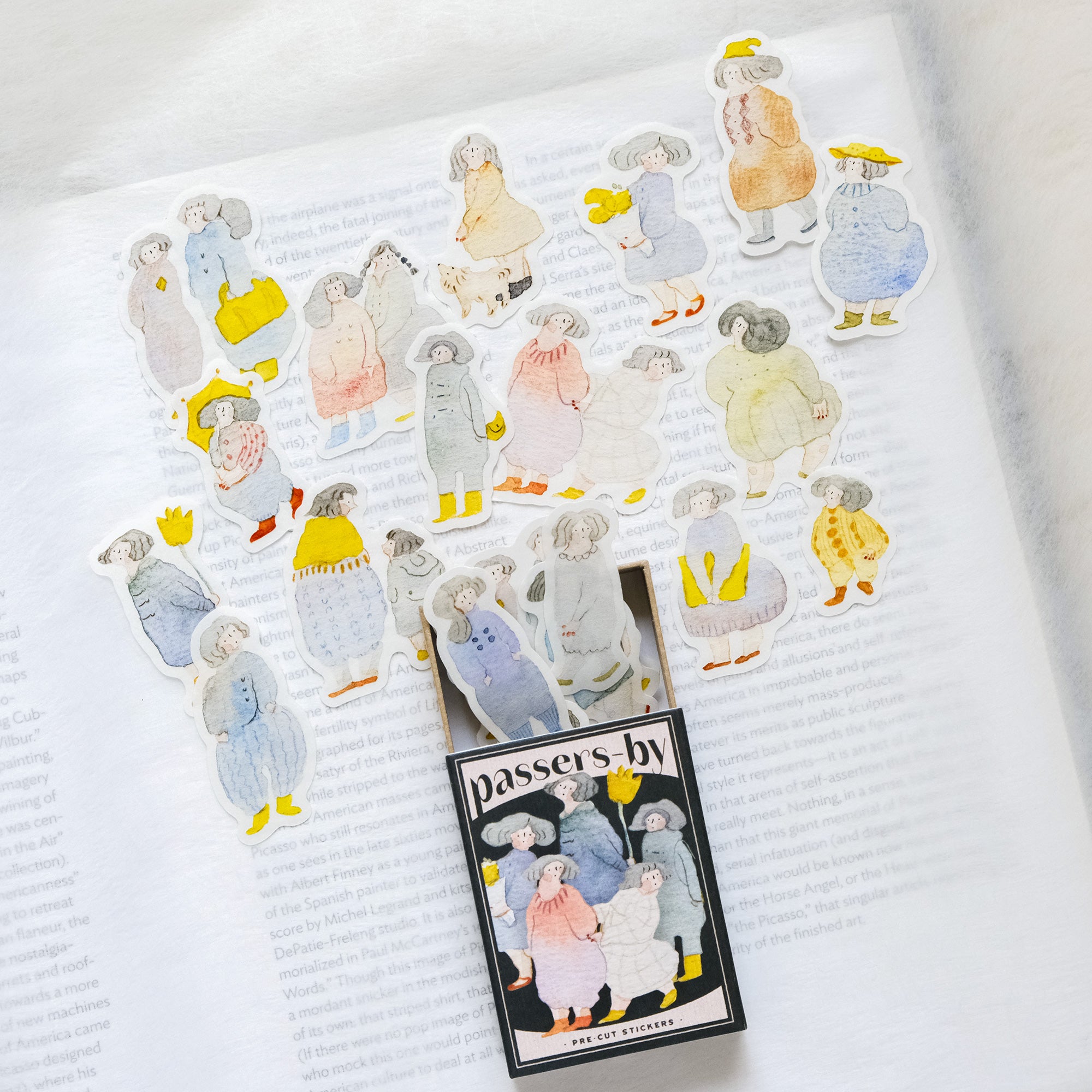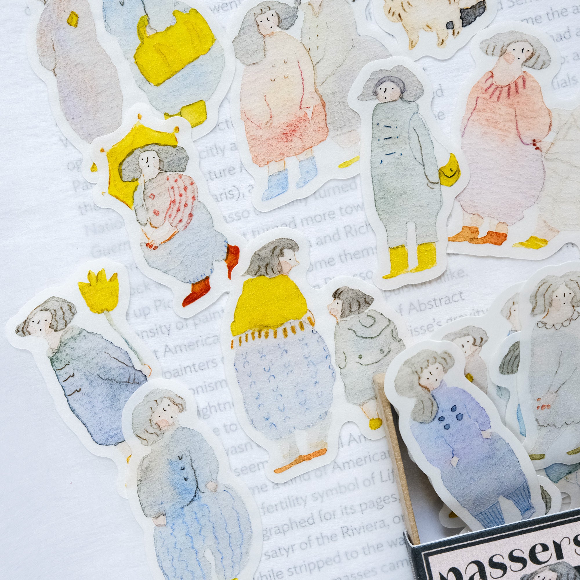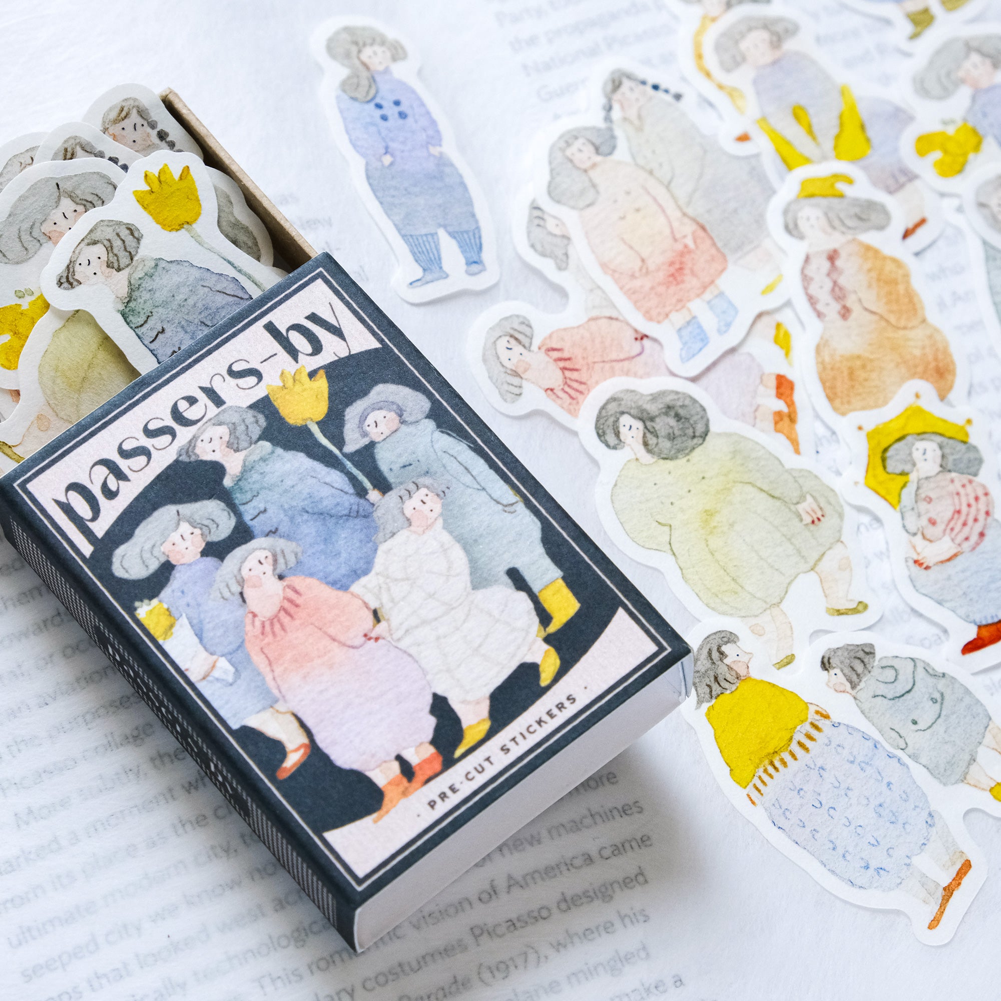 Introducing the Passers-by sticker flakes matchbox series from dodolulu! Perfect for journal lovers who appreciate beautiful illustrations, these pre-cut stickers feature original artworks in watercolor and colored pencil. The designs feature adorable girls that will add a unique touch to your journals, planners, or any other project you have in mind. Get creative and make something special with the Passers-by sticker flakes matchbox series!