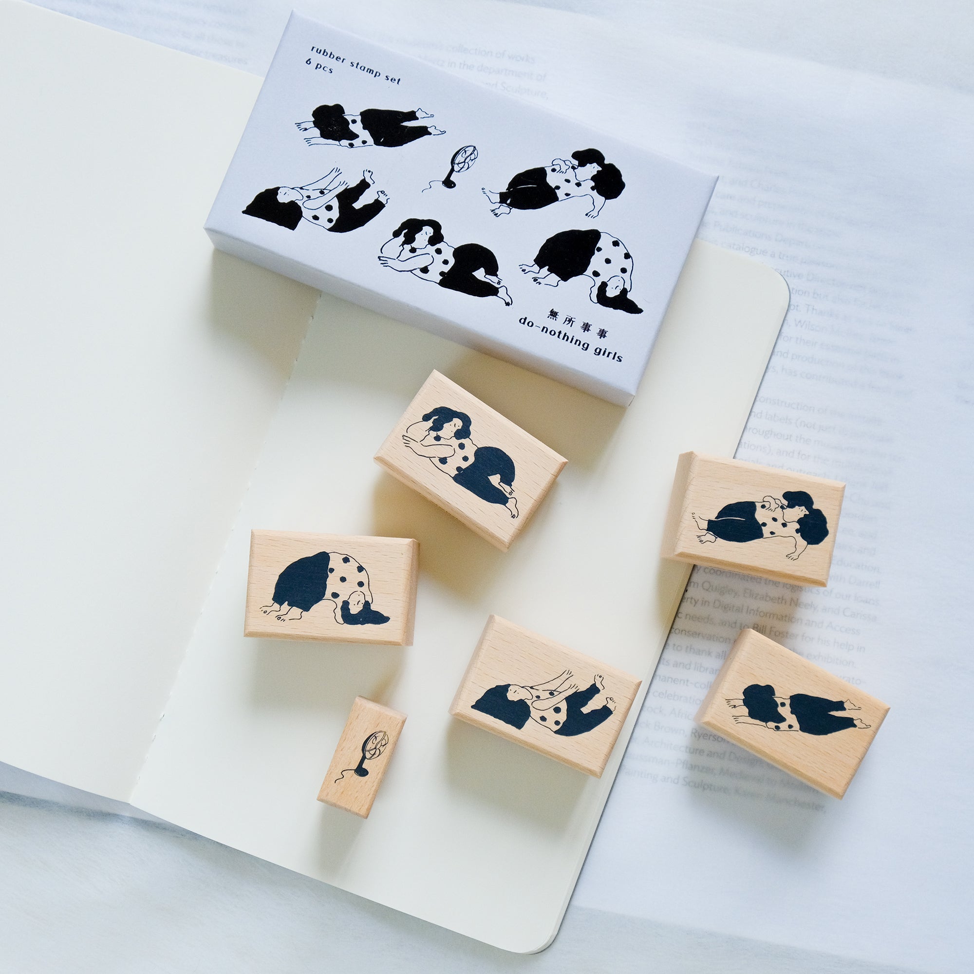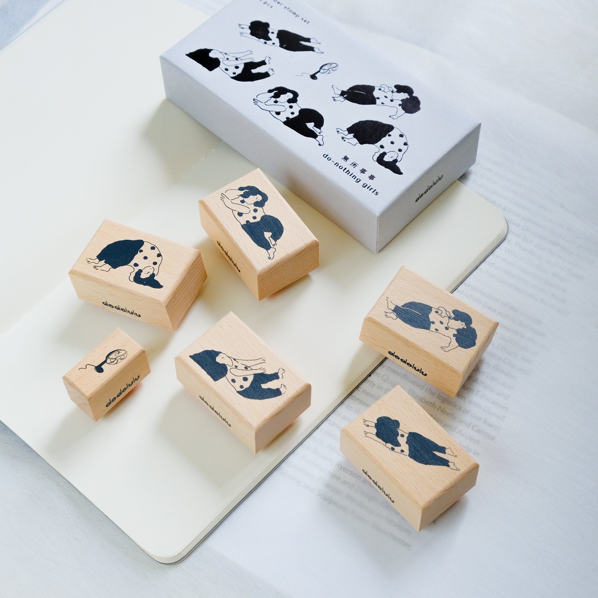 Introducing "Do-Nothing Girls," our delightful new journal stamp set that enhances your journaling experience. This charming collection features 6 beautifully wooden planner stamps, capturing the essence of leisure and relaxation. Perfect for enthusiasts, these whimsical bullet journal stamps add a touch of whimsy to your bujo pages. Made with high-quality rubber stamps bring joy to your creative process. Bring your journal to life with the captivating designs of "Do-Nothing Girls" and let them accompany you on your journey of self-expression.