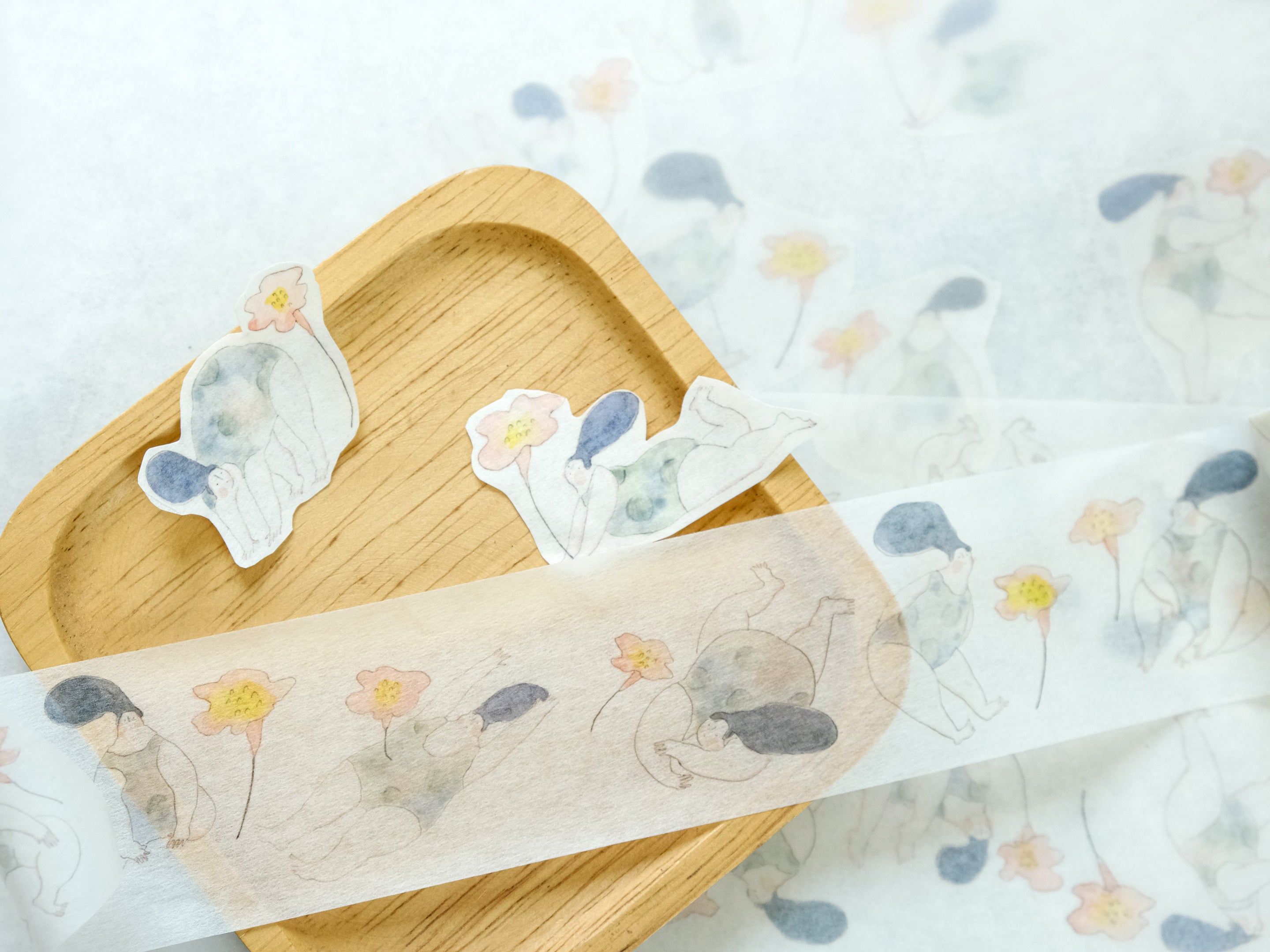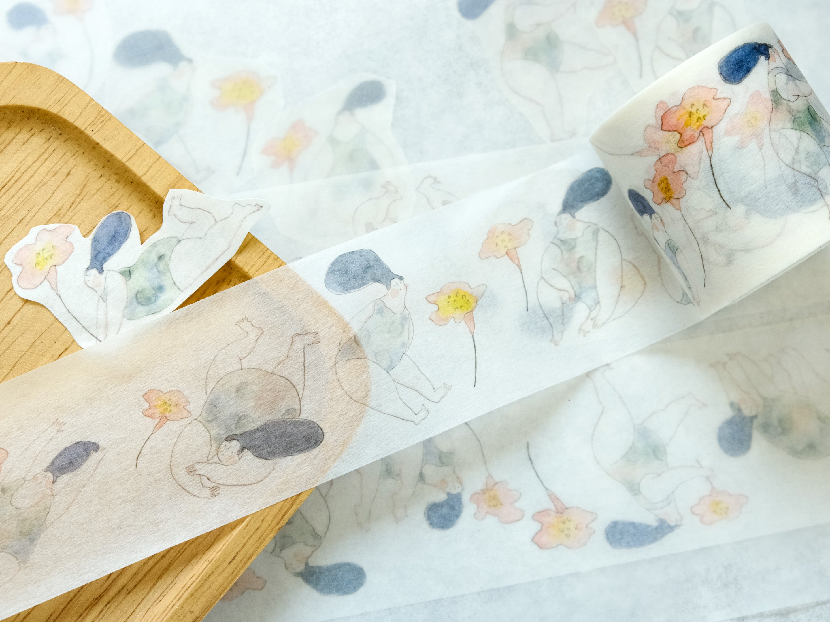 dodolulu " Planting" Washi Tape - Japanese masking tape featuring original minimalist illustrations capturing poignant moments in life. Perfect for bullet journals, planners, scrapbooks, and other crafting projects. Made with high-quality Japanese washi tape and comes with release paper for easy application. Add some whimsy to your next project with dodolulu washi tape!