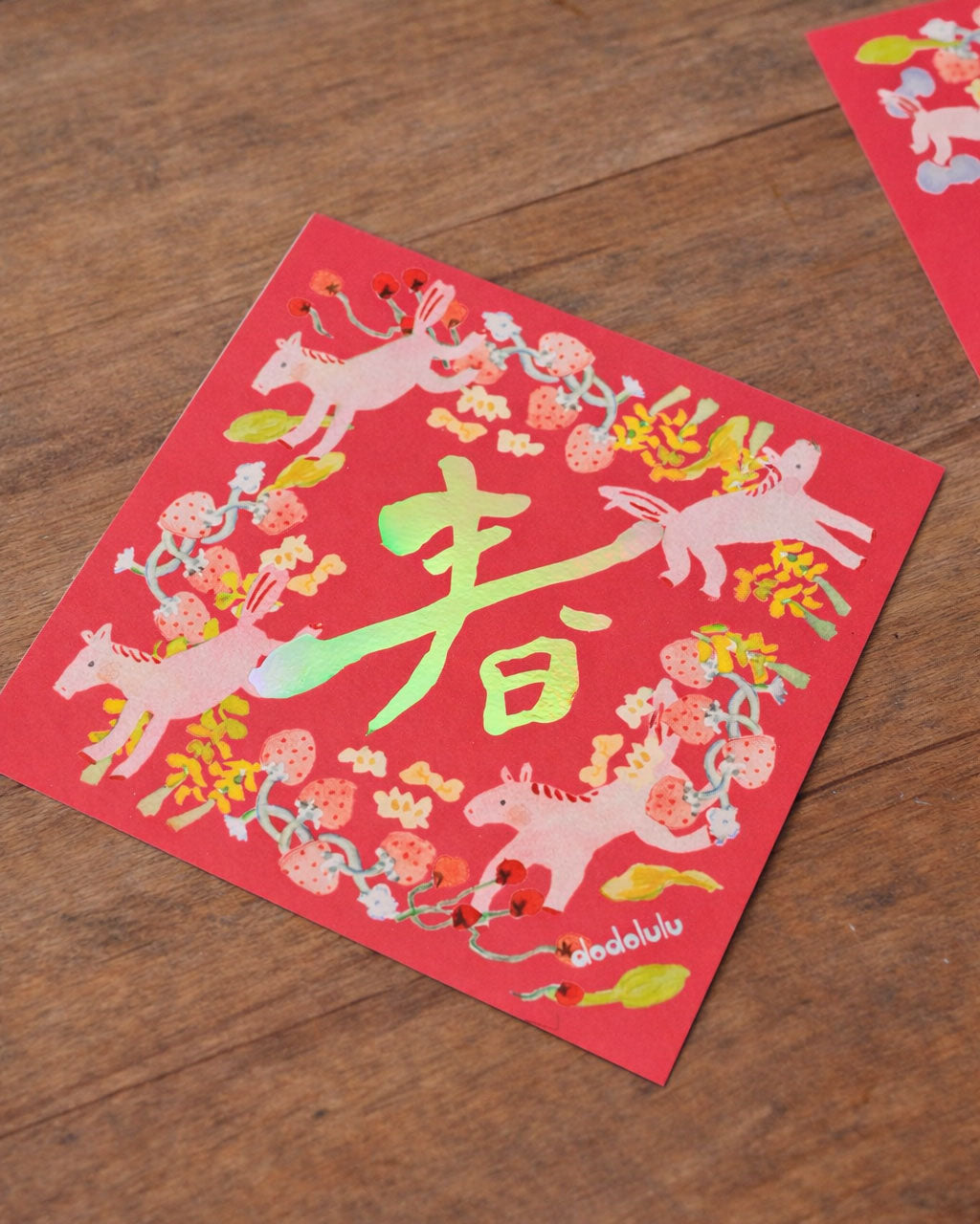 The Year of the Horse & Happy Spring Festival (Red) - Fai Chun - Red Banner Couplets Set