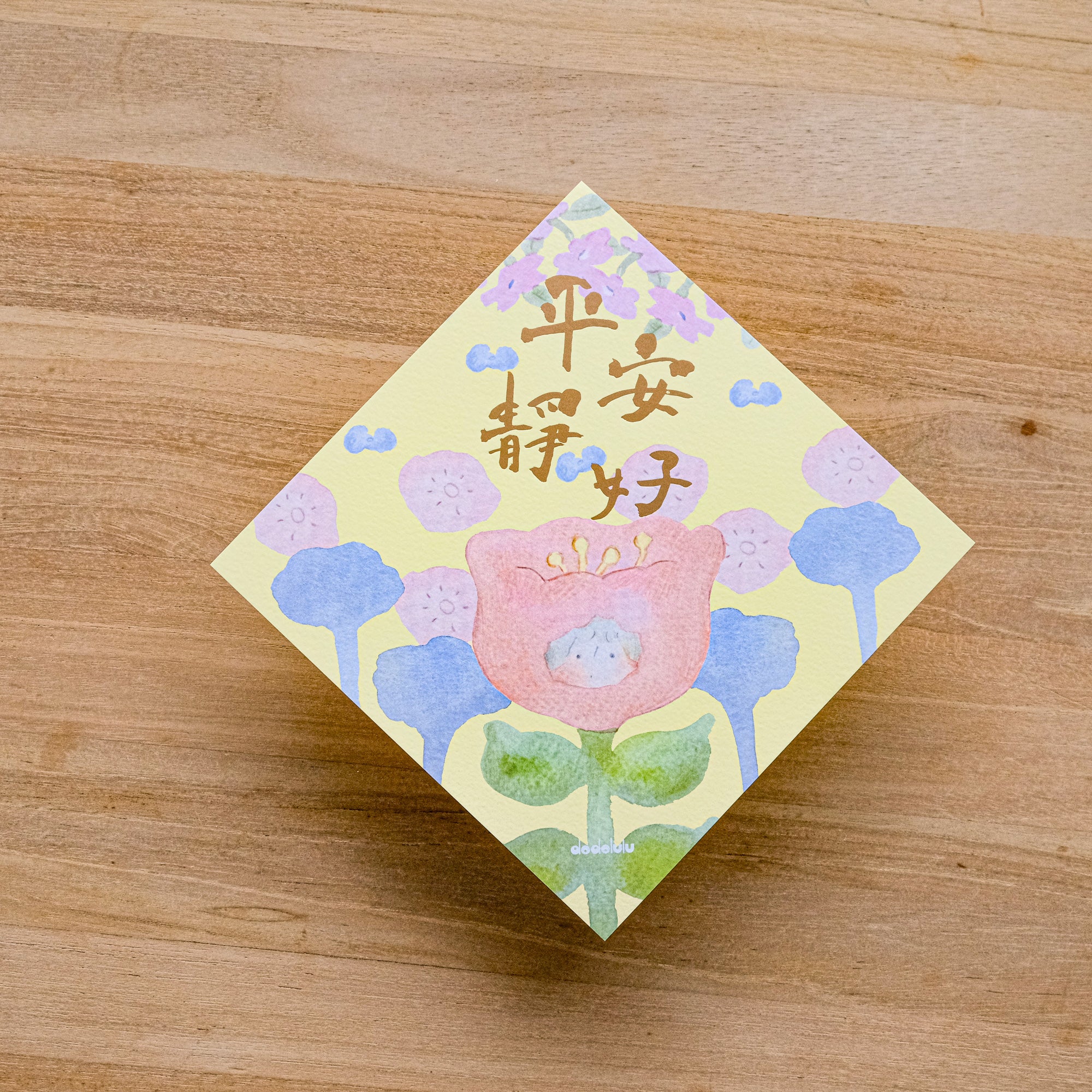 Peace & Tranquility 平安靜好 - Fai Chun (Squared) - Illustration Lunar New Year Red Banner Diamond Shape