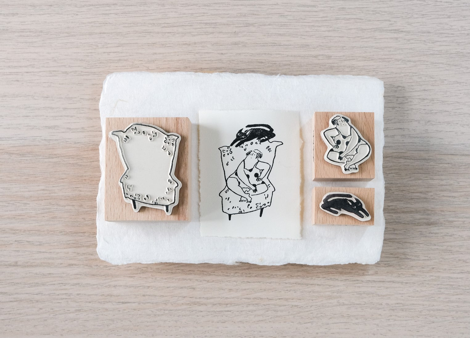 Wooden Rubber Stamp Set - Couch Potato
