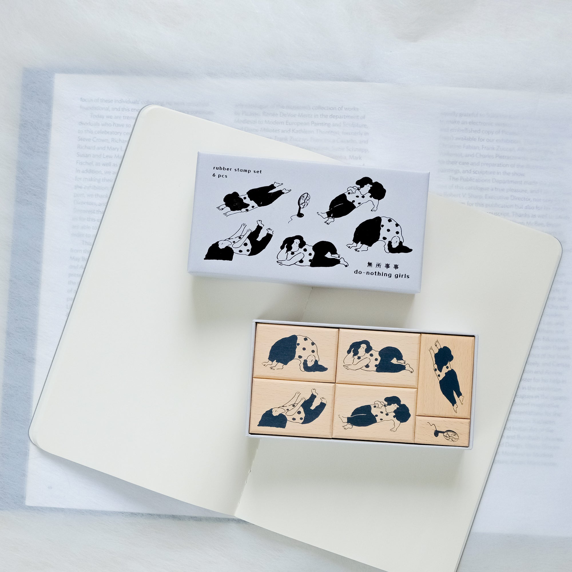 Introducing "Do-Nothing Girls," our delightful new journal stamp set that enhances your journaling experience. This charming collection features 6 beautifully wooden planner stamps, capturing the essence of leisure and relaxation. Perfect for enthusiasts, these whimsical bullet journal stamps add a touch of whimsy to your bujo pages. Made with high-quality rubber stamps bring joy to your creative process. Bring your journal to life with the captivating designs of "Do-Nothing Girls" and let them accompany you on your journey of self-expression.