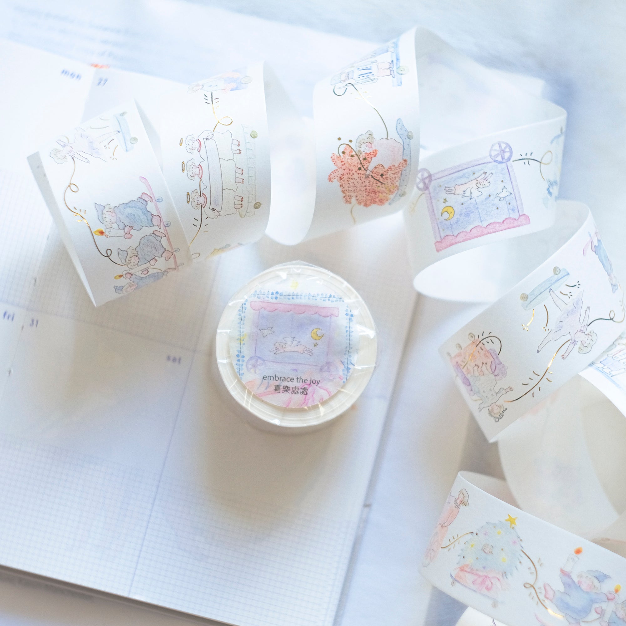 Introducing dodolulu "Embrace the Joy" washi tape - a versatile and high-quality masking tape with original illustrations by dodolulu. Perfect for bullet journals, planners, scrapbooks, and other crafting projects. Made with high-quality Japanese washi and comes with release paper for easy application. Add some whimsy to your next winter project!