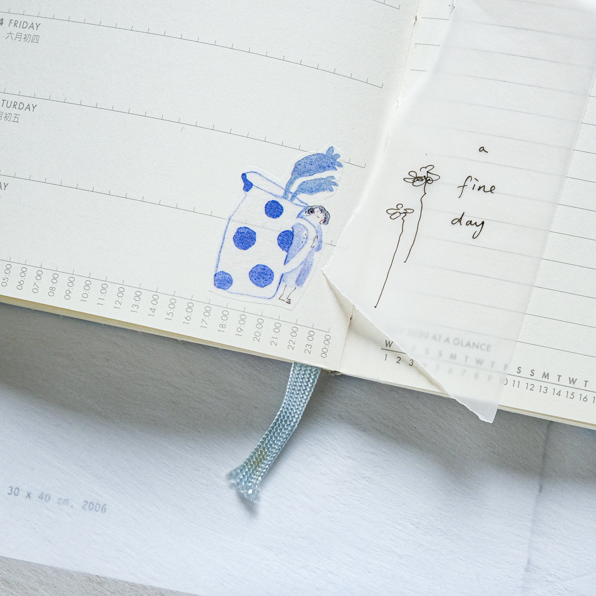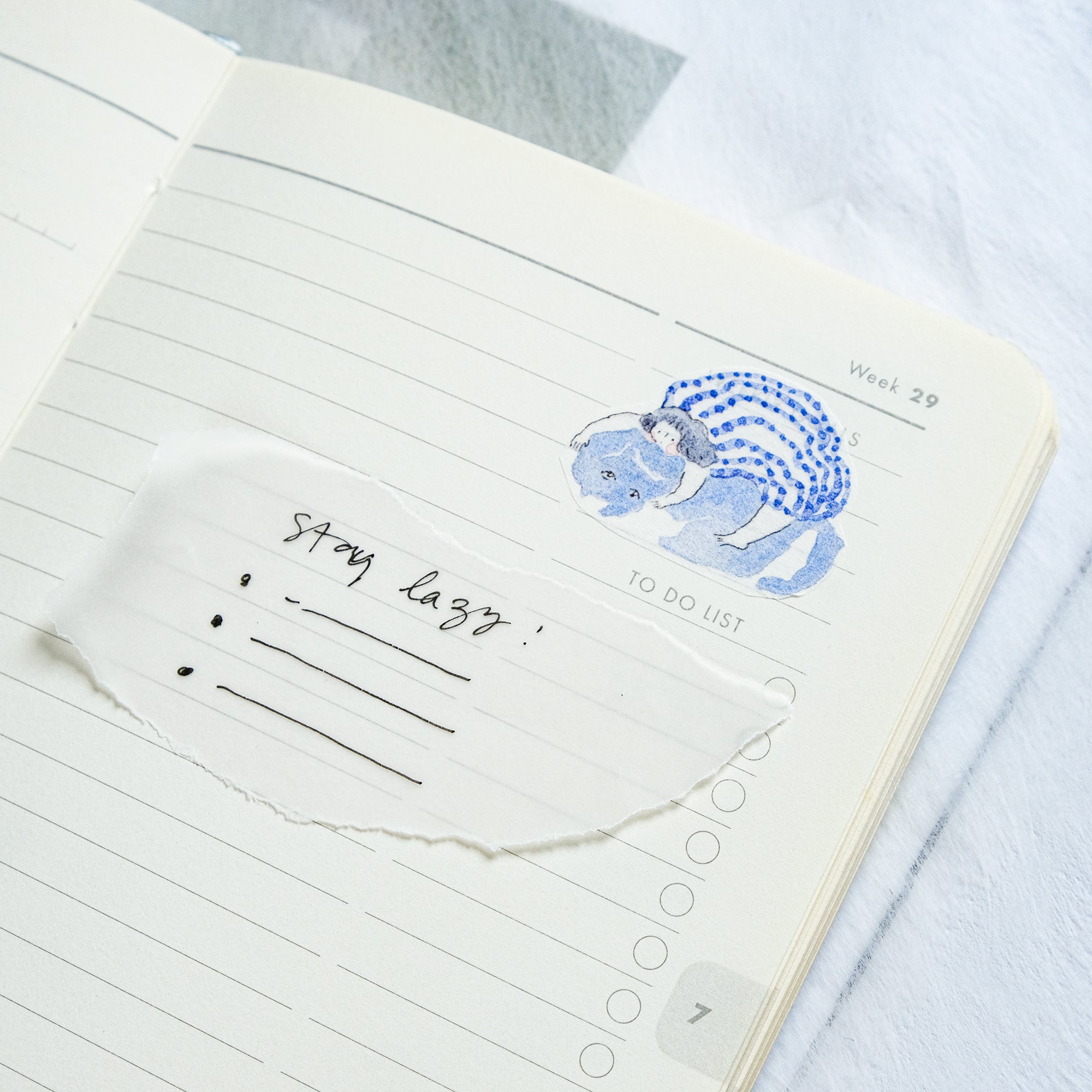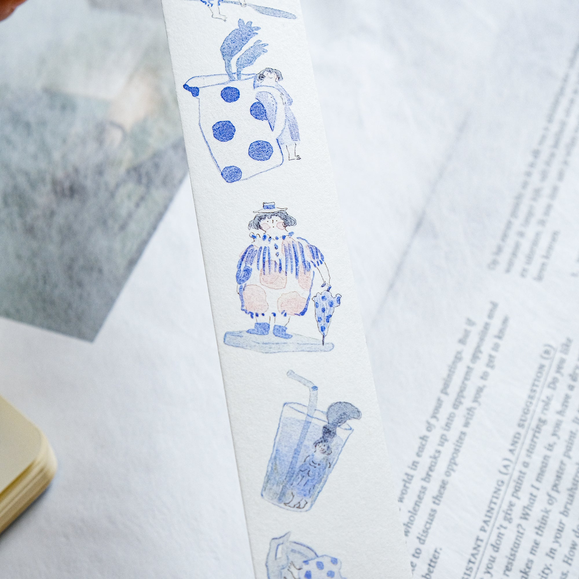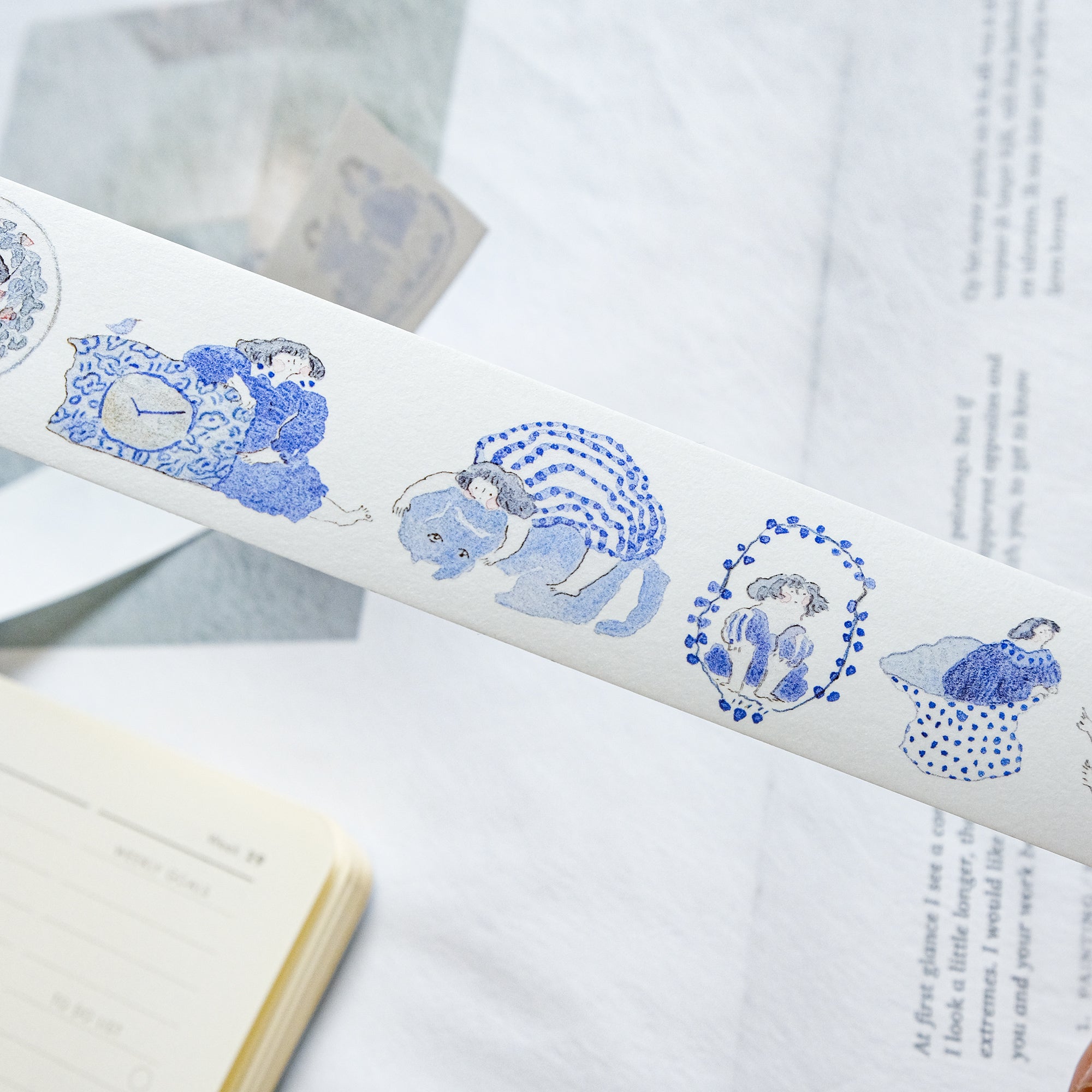 dodolulu "Blue and White" Washi Tape - Japanese masking tape featuring original minimalist illustrations capturing poignant moments in life. Perfect for bullet journals, planners, scrapbooks, and other crafting projects. Made with high-quality Japanese washi tape and comes with release paper for easy application. Add some whimsy to your next project with dodolulu washi tape!