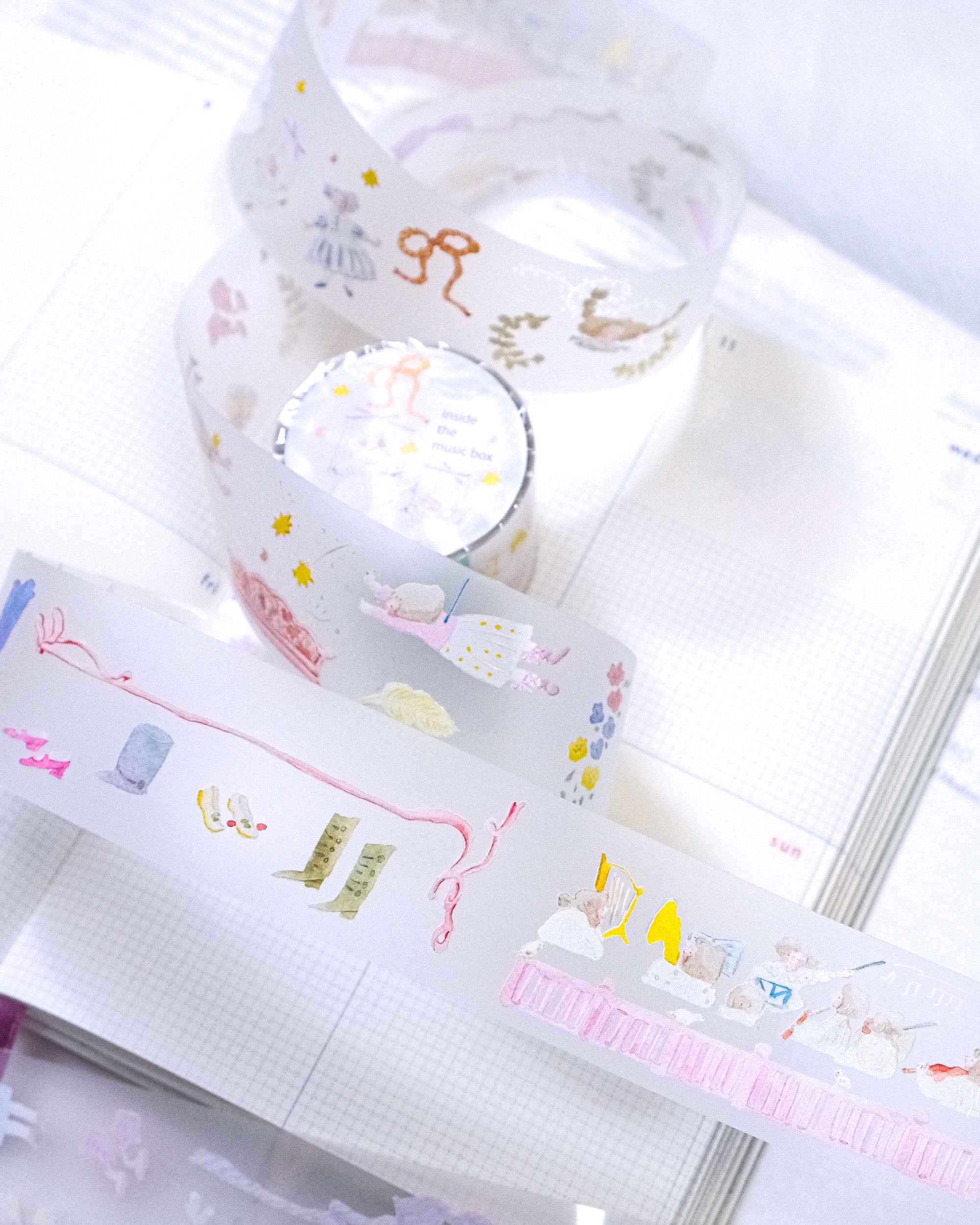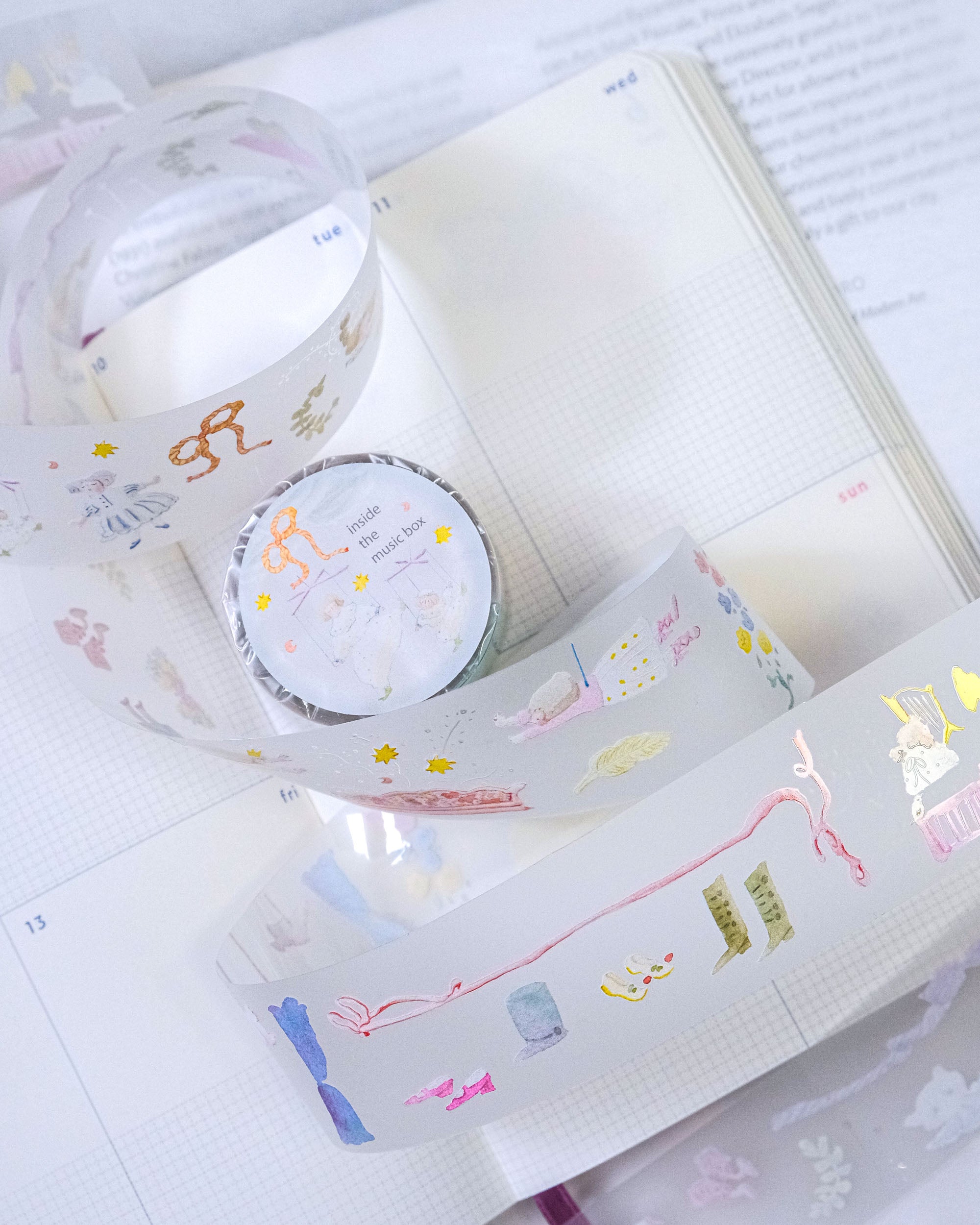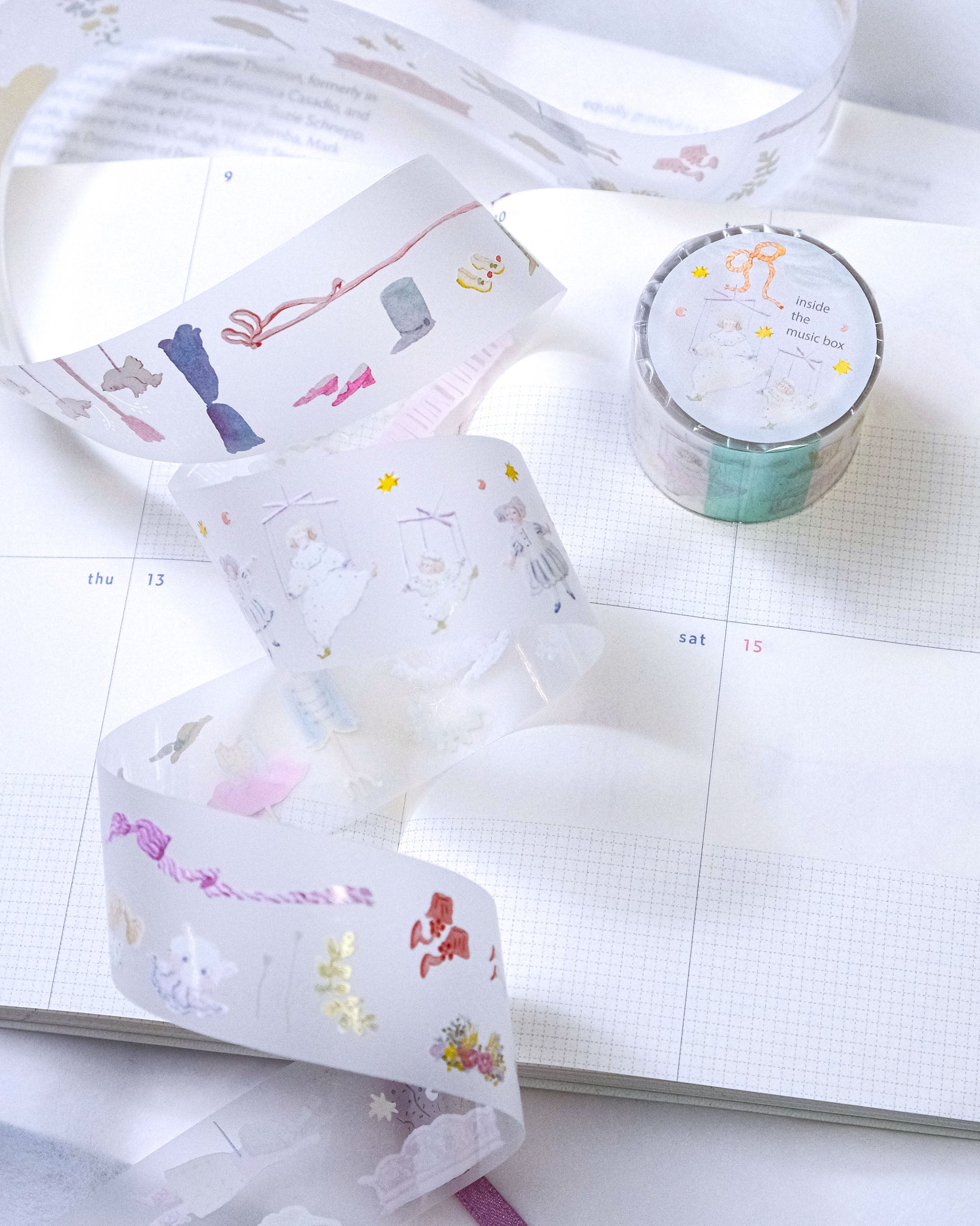 從音樂盒的溫柔旋律中汲取靈感,「旋律之外」燙金工藝 PET 膠帶提供 3.5cm x 5m 的尺寸,80cm 循環。微妙的燙金點綴勾勒出懷舊的情懷,適合為您的手帳增添一絲永恆的魅力。使用 PET 材質與離型紙,專為文具愛好者的輕鬆創作而生。